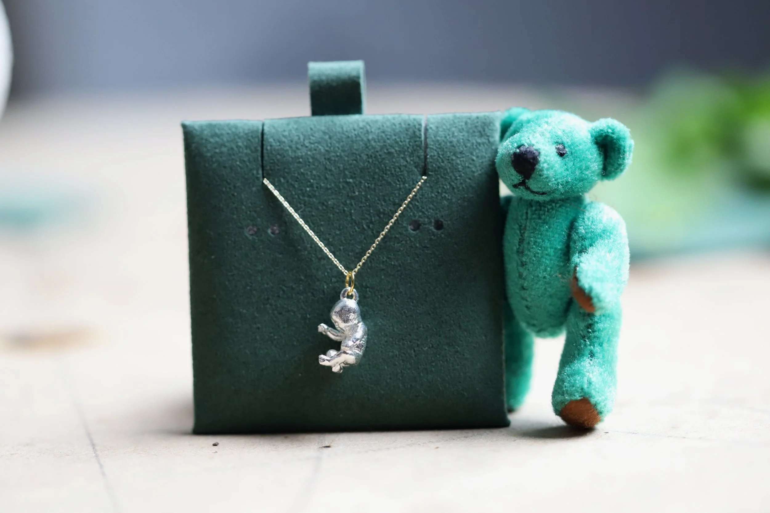 This edition features a finely polished x-small Mini Navi, hand-poured in sterling silver (approx. 3.5cm, unhallmarked), suspended from a 9ct yellow gold chain with a golden fixture.